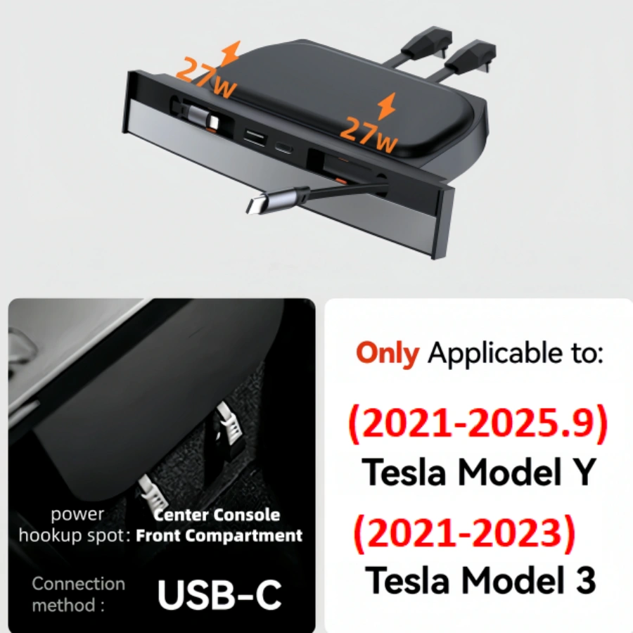 Tesla Drive Saver:Retractable USB Hub for Tesla Model 3/Y Concealed Docking Station with Dustproof Sliding Cover and Quick Charging